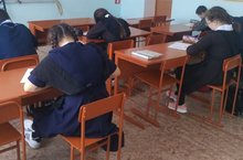 Учащиеся 9 - го класса пишут пробный ОГЭ по математике