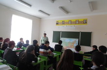 В школе в этот день учителем географии Хафизовой И.Р. был проведен урок на экологическую тему. Убирали территорию школы от мусора.