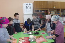 Ученики 5 класса на уроке технологии под руководством учителя технологии Шариповой Н. Б. знакомятся с технологией приготовления салата "Винегрет"