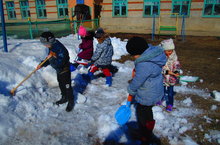 Балаларыбыз хезмәтне теләп башкара. 27.03.2015 Язгы кояш нурлары карый башлагач, участокта кар тарату -балаларның кызыксынып башкара торган хезмәтләре. Өлкәннәргә ярдәм итү теләген үстерү белән бергә хезмәт тәрбиясе дә бирүче бу шогыльне балалар бик теләп башкара.