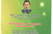 "Сандугачтай моңлы Тукай теле"бәйгесе. 21.04.2016 Г.Тукайның 130 еллыгына багышланган "Сандугачтай моңлы Тукай теле"сәхнәләштерү бәйгесендә 2нче дәрәҗә лауреат исеме алдык.