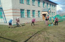 Язгы җыештыру эшләре башланды.Безнең коллектив та участокны тырмалап чистартырга,чүпләрдән арындырырга дип чыкты.
