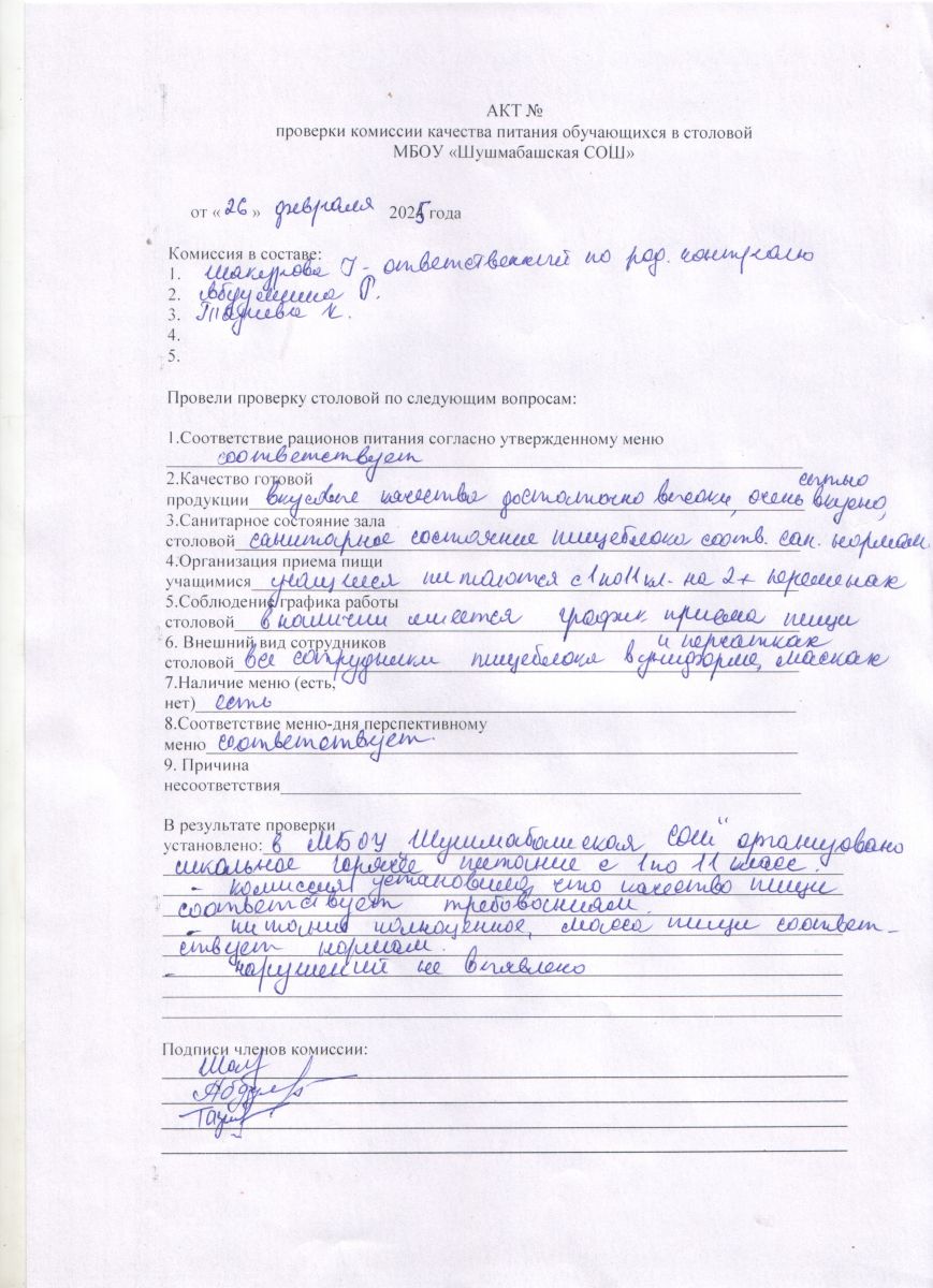 АКТ проверки комиссии питания обучающихся в столовой от 26.02.2025г.jpg