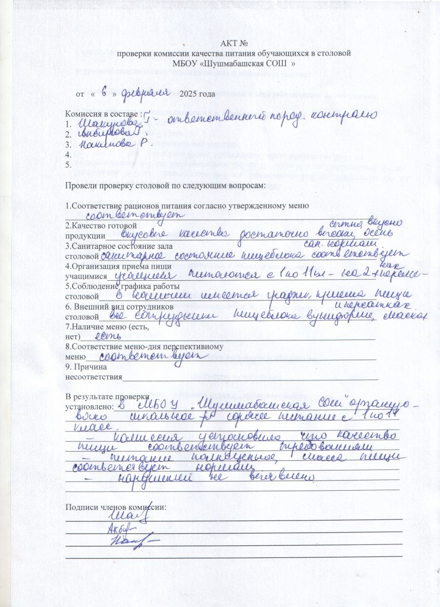 АКТ проверки комиссии питания обучающихся в столовой от 06.02.2025г.jpg