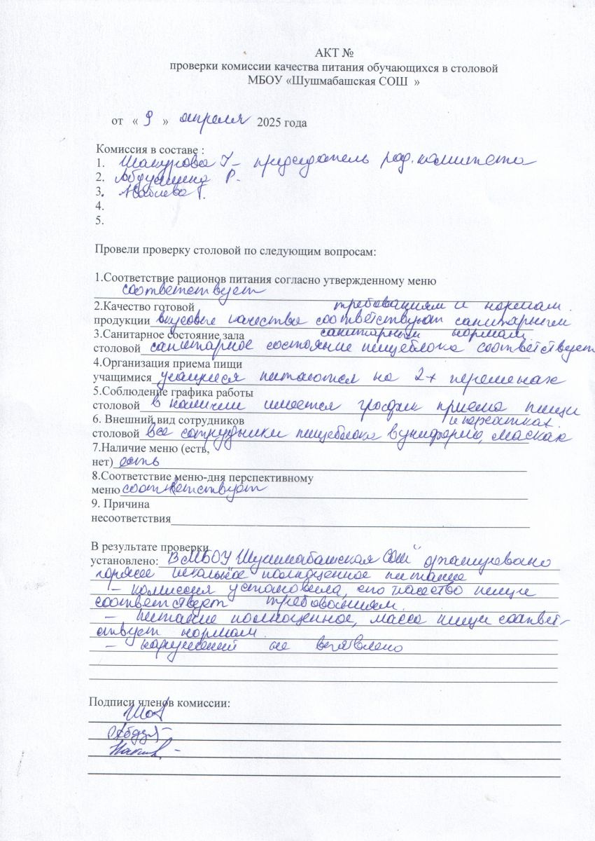 АКТ проверки комиссии питания обучающихся в столовой от 9 апреля 2025.jpg