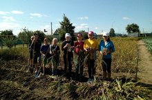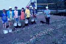 Мәктәп яны бакчасында укучылар тырышып сарымсак җыюда катнаштылар. Сарымсак уңышы мулдан булган.