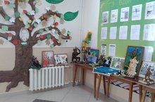 Габдулла Тукайның 131 еллыгы уңаеннан мәктәптә күргәзмә эшли башлады. Тукай агачы янында укучыларның үз көчләре белән эшләнгән иҗат җимешләре урнашты. Күргәзмә укучылар арасында зур кызыксыну уятты.