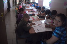 Иртәдән үк көн матур тышта, ләкин бераз салкынрак. Без бүген урамда асфальтка рәсемнәр ясадык. Төрле-төрле темаларга бик матур рәсемнәр килеп чыкты. Балалар бар тырышлыкларын куеп эшләделәр.Җиңүчеләрне котлап, кечкенә генә истәлекле бүләкләр тапшырылды. Спортплощадкада станцияләр буйлап уеннар уйнап алдык. Балалар бик канәгать булып,өйләренә таралыштылар.