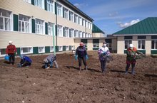 Мәктәп бакчасында язгы утырту эшләре дәвам итә. Бүген укытучылар һәм техник хезмәткәрләр кәбестә утырттылар.
