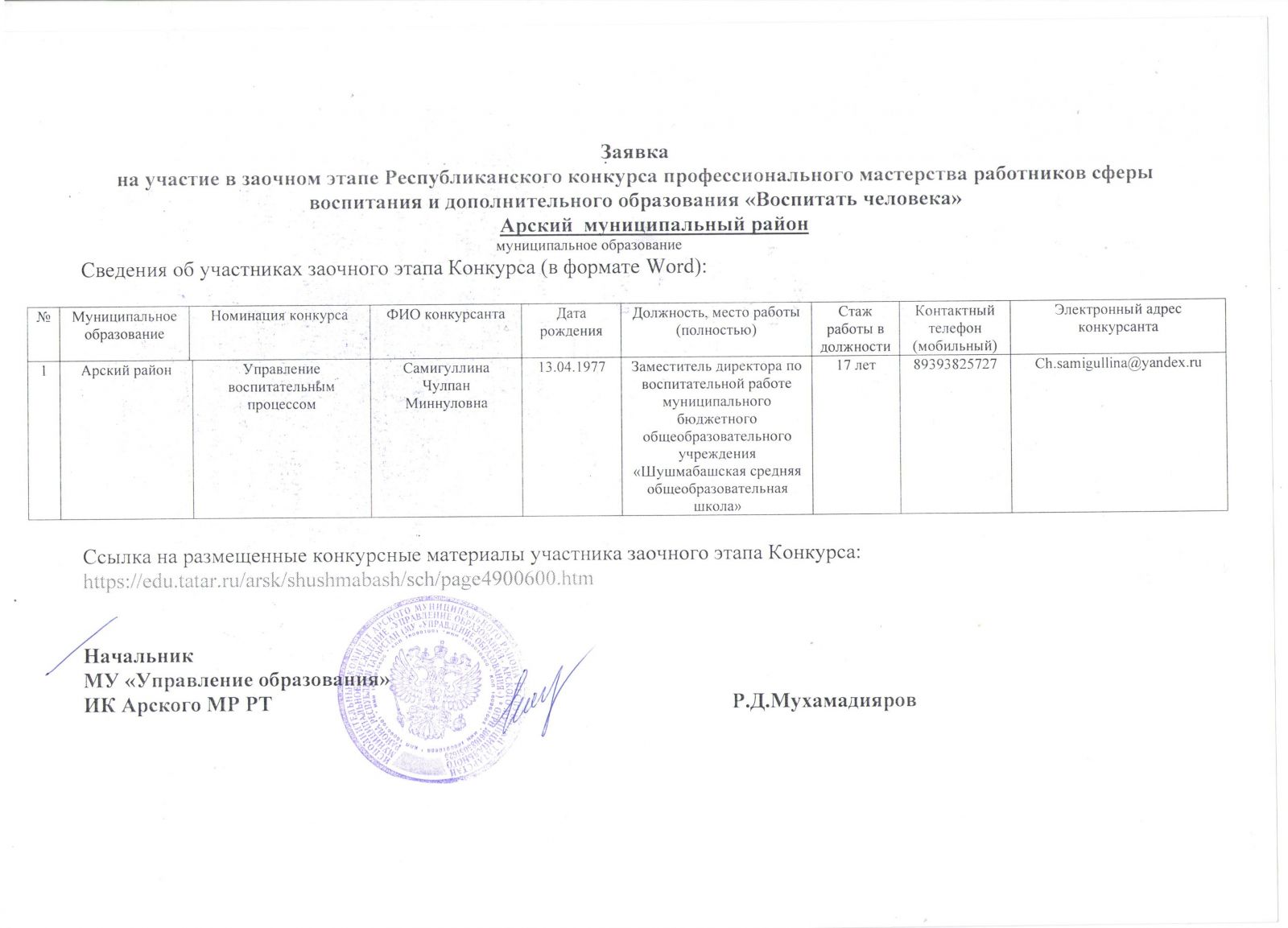 Муниципальное бюджетное общеобразовательное учреждение «Шушмабашская средняя общеобразовательная школа» Арского муниципального района Республики Татарстан/Татарстан Республикасы Арча муниципаль районының “Шушмабаш урта гомуми белем мәктәбе” муниципаль бюджет гомуми белем учреждениесе