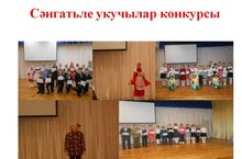 26 нчы март көнне башлангыч класс укучыларының 2 нче тур районкүләм "Балачак шигырьләре" баш астында сәнгатьле уку конкурсы оештырылды. Мәктәбебездән 2 нче класс укучысы Камалова Д.Б., 3 нче класс укучысы Нәгыймова Р.Ф., 4 нче класс укучысы Шәмсемөхәмәтова И.И. уңышлы чыгыш ясадылар.