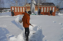 Продолжается весенняя неделя Добра - эстафета добрых дел.Сегодня учащиеся школы очистили территорию обелиска от снега.