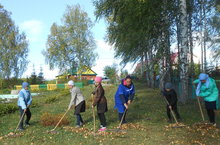 Бүген район күләмендә билгеләнгән территорияләрне чистарту буенча өмә үткәрелде. Без дә мәктәп территориясен көзге яфраклардан арындырдык, агач кәүсәләрен агартып, кышкы сезонга әзерли башладык.