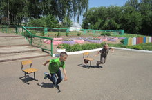 Һәркем җиңүгә омтыла.”Күңелле стартлар” барышында “Гөлкәйләр” дә, “Елмай” да сынатмадылар, бергәләшеп ярыштылар. Саф һавада рәхәтләнеп күңел ачтылар, көч сынаштылар. Матур көннең нәтиҗәсе дә матур булды – ДУСЛЫК җиңде! Соңыннан күмәкләп татарча бию кәефләрне тагын да күтәрде.
