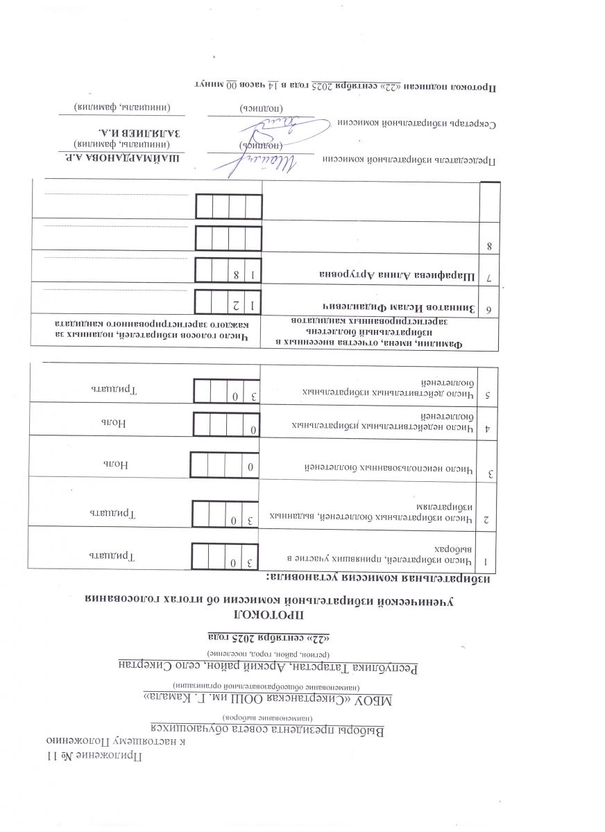 Протокол ученической избирательной комиссии об итогах голосования в 2025-2026 учебном году