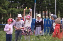 Хезмәт һәм ял лагере укучылары мәктәп бакчасында эшләделәр: су сиптеләр, чүп утадылар, бәрәңге арасын эшкәрттеләр. Ял вакытында алар дә хәзинә эзләде.