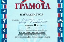 Команда юношей нашей школы под руководством тренера-преподавателя Ахмадеева Марата Гусмановича заняла 2 место в Первенстве Арского муниципального района по национальной борьбе среди юношей 1997 г.р. и моложе, посвященного Дню Неизвестного Солдата. В составе команды: Дилюс Ахмадеев-1 место; Нияз Гусманов-3 место; Рамзиль Ахметзянов-1 место; Эльмар Залялутдинов-3 место. Искренне поздравляем победителей соревнований!