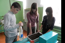 Укучылар тәҗрибәләр үткәрү өчен балчык әзерләделәр. Җитәкче- биология укытучысы- Мөхәммәдиева Р.В.
