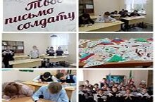 Сегодня в школе прошла акция "Твоё письмо солдату". Все учащиеся участвовали очень активно. В письмах они выразили своё уважение, заботу, гордость за наших солдат, веру в Победу. Благодарили солдат за отвагу, мужество, смелость. Украсили письма надписями: "Спасибо тебе, солдат!", "Победа будет за нами!", "Возвращайтесь живыми