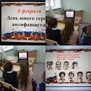 Сегодня в классах был проведён классный час на тему "День юного антифашиста". Памятная дата 8 февраля «День памяти юного героя–антифашиста» была утверждена очередной Ассамблеей ООН. Этот день отмечается ежегодно 8 февраля с 1964 года. Памяти юных, мальчиков и девочек всех стран мира, тех, кто боролся и умирал за мир, свободу, демократию и счастье людей, посвящается день 8 февраля. В нашей стране эта дата именуется как День юного героя – антифашиста. Мы чтим память тех, кто сражался за нашу Родину. А сражались за неё не только взрослые, но и дети. Эти девочки и мальчики не играли в войну – они показали чудеса храбрости и мужества. О них написано много книг, стихов, песен, снято много художественных фильмов. В честь погибших в Великой Отечественной войне во всех населённых пунктах поставлены мемориальные доски, горит вечный огонь. Коротка жизнь юных героев, но велика сила их примера!