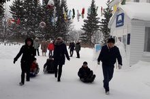 Бүген мәктәптә әти-әниләр һәм балалар кышкы уеннар уйнарга чакырылдылар. Укучылар белән бергәләп әти-әниләр дә чана шуды, уеннар уйнады.