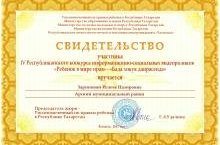 Участник нашей школы IV Республиканского конкурса информационно-социальных видеороликов "Ребенок в мире прав"-"Бала хокуклары даирәсендә" награжден сертификатом, учредители этого конкурса: Уполномоченный по правам ребенка в Республике Татарстан, Министерство образования и науки Республики Татарстан, Министерство по делам молодежи и спорту Республики Татарстан, Министерство юстиции Республики Татарстан, Республиканское агентство по печати и массовым коммуникациям "Татмедиа".