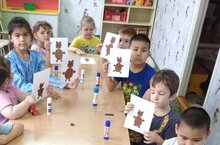 Буген , " Минем яраткан аюым " темасына аю кисеп ябыштырдык, Максат: балалар яраткан уенчыклары аюны кисеп ябыштыру.