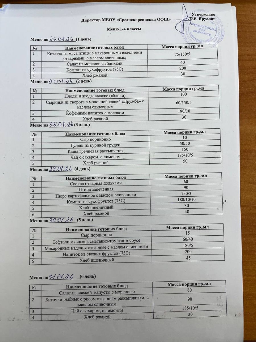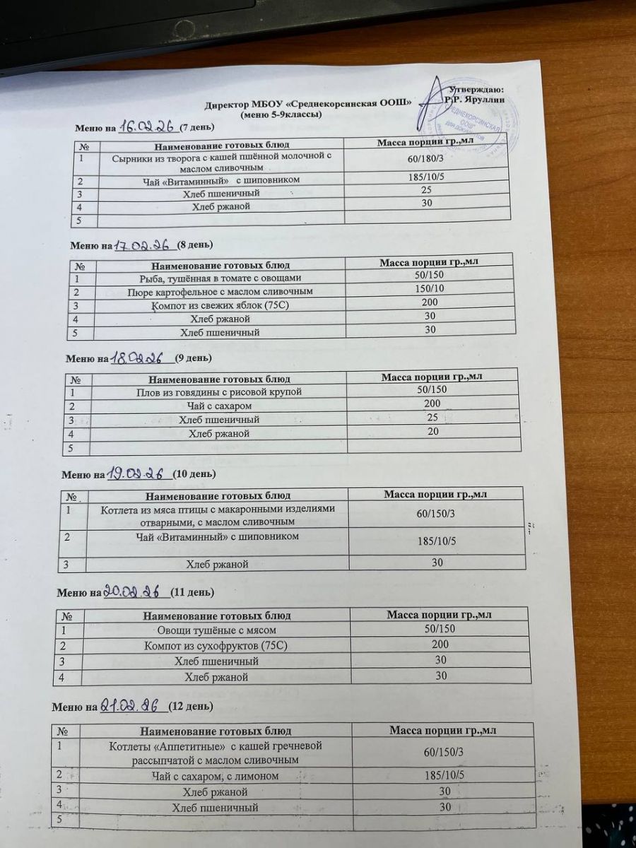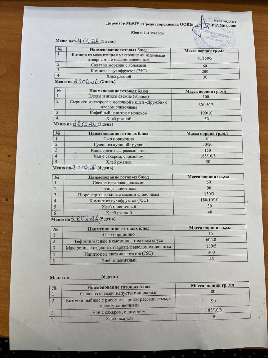 Утвержденное меню для учащихся начальных классов 01.03.2026 Утвержденное меню для учащихся 5-9 классов 01.03.2026