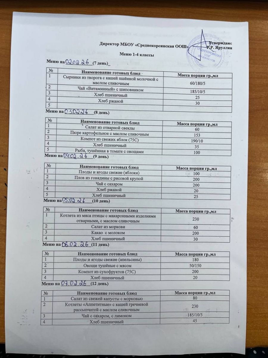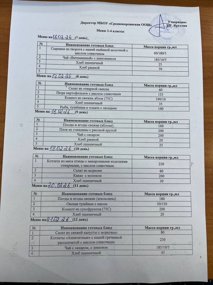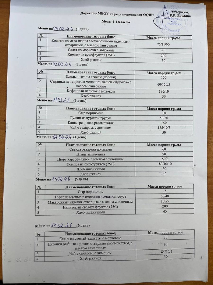 Утвержденное меню для учащихся начальных классов 01.03.2026 Утвержденное меню для учащихся 5-9 классов 01.03.2026