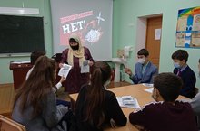 Наркомания в наше время достигла масштабов эпидемии. Поэтому немаловажное значение в современном обществе приобретает профилактика наркомании. Она подразумевает комплекс мер, предупреждающих появления наркомании. В рамках Общероссийской антинаркотической акции «Сообщи, где торгуют смертью», в 9 классе была проведена беседа «Скажи наркотикам: «Нет!». В конце беседы старшеклассникам были розданы антинаркотические буклеты, где указаны список телефонов горячих линий по вопросам незаконного оборота наркотиков.