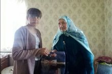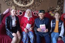 5, 6 сыйныф укучылары Галиәхмәтов Рәфкать абый белән Мөкәррәмә апаны Җиңү көне белән котладылар.