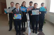 1961 нче елның 12 апрелендә, дөньяда беренче буларак, бортына кеше утырган “Восток” космик корабле җир тирәли орбитага чыгарылды. Бу кеше – очучы – космонавт Юрий Алексеевич Гагарин иде. Ул илебез хөкүмәте тапшырган эшне үтәде. Укучылар рәсем дәресләрендә әлеге темага рәсемнәр ясадылар, аларның эшләреннән күргәзмә оештырылды. -