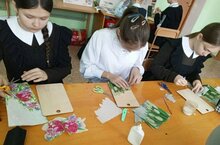 В рамках недели труда для учащихся 7 класса организована творческая мастерская "Оформление изделий в технике декупаж". Учащиеся познакомились с историей возникновения и развития этой техники, выполнили простейшие приёмы начального этапа техники декупаж. Декупаж позволяет создавать интересные изделия, проявлять творческую фантазию и реализовывать идеи.