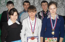Гыйльметдинова Илүзә, 8 кл., Мөхәммәдиев Илмир, 8 кл., Мөхәмәдиева Хәния, 8 кл., Яруллин Илназ, 9 кл.
