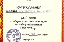 1998-1999 нчы елгы егетләр арасында район беренчелегенә узган волейбол ярышында мәктәп командасы БЕРЕНЧЕ урынга лаек булды. Афәрин, егетләр!