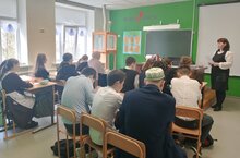 В процессе беседы ребята посмотрели видеоролики: интервью с руководителем РСО Михалом Киселёвым; выполнили интерактивное задание «Город профессий РСО» и посмотрели фильм «Первые. Труд крут»