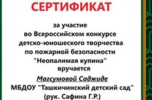 С целью формирования и закрепления навыков грамотного поведения при обнаружении пожара, при пожаре, а также других чрезвычайных ситуациях ВДПО РФ каждый год проводит конкурс "Неопалимая купина". Наши воспитанники вместе с родителями принимают активное участие в этом масштабном деле.