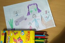 Төсле карандашлар белән "Мин әнинең булышчысы" исемле рәсем ясау.