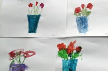 Табигать матурлыгын төшерү максатынна сынлы сәнгать шөгелендә краска белән "Вазадагы чәчкәләр" буйяу.