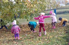"Сары- сары сап-сары, агачның яфраклары, җил исә ява яфрак көзнең матур чаклары."-прогулка вакытында балалар яфрак очырып уйный.