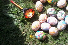 Менә нинди матур күкәйләр бизәде безнең әниләребез. Без шул күкәйләрне кашыкка салып йөгердек, ераклыкка тәгәрәтеп ярыштык.