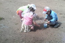 Бакча каршындагы асфальтта рәсем ясап уйнарга яратабыз.