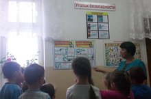 Тәрбияче балаларга "Терроризм нәрсә ул?" дигән темага әңгәмә үткәрде. Ул стендта булган рәсемнәрне нәрсә аңлатканын, нәрсәдән сакланырга, куркыныч янаганда үзеңне ничек тотарга икәнен аңлатты. Балалар апаларын бик кызыксынып һәм гаҗәпләнеп тыңладылар.