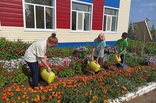 Җәй көне мәктәп яны тәҗрибә участогында эш гөрли. Укучылар чәчәкләргә, җиләк җимешләргә, яшелчәләргә су сибәләр, чүп утыйлар, төпләрен йомшарталар.
