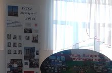 Мәктәптә "Татарстан Республикасына - 100 ел" темасы астында төрле чаралар үткәрелә. Класс сәгатьләрендә ТАССР төзелү тарихы, аны төзүдә катнашкан кешеләрнең эшчәнлеге өйрәнелә. Бүген шушы чарага багышланган күргәзмә оештырылды.