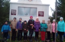 6нчы сыйныф укучылары Бөек Ватан сугышы кырларында һәлак булган авылдашлар хөрмәтенә куелган һәйкәлне ел буена карап торалар. Бүген исә, һәйкәл әйләнәсендәге чүпләрне, корган чәчәкләрне утап, чистартыллар.