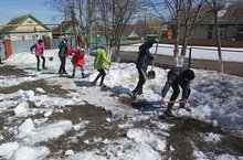 Елның елында апрель аенда язгы чистарту эшләре оештырыла. Көннәр салкын тору сәбәпле, быел карлар эрү озакка сузылды. Бүген мәктәп коллективы, дәресләрдән соң, карларны тарату буенча өмә оештырды. Өмәдә барлык укучы, укытучы һәм хезмәткәрләр катнашты.