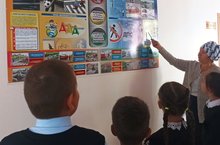 Укучылар “Юл йөрү кагыйдәләре” почмагында яңа мәгълүматлар белән таныштылар. Юл билгеләрен кабат хәтерләрендә яңарттылар.