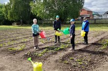 Мәктәп яны тәҗрибә участогында эш гөрли. Укучылар чәчәкләргә, җиләк җимешләргә, яшелчәләргә су сибәләр, чүп утыйлар, төпләрен йомшарталар.