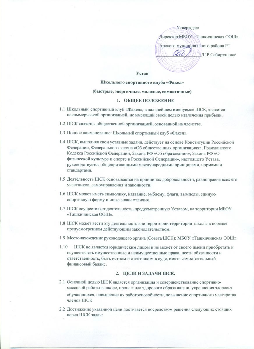 Устав школьного спортивного клуба "Факел"
